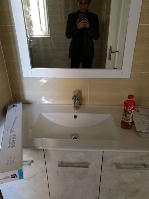 工人师傅工作态度认真,沟通顺畅,但瓷砖铺贴质量与之前一次百安居装修相差较大:缝隙大小不一,整体间隙较大,瓷砖间平整度不好,看不出对过阳角。